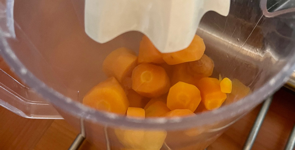 Una volta cotte, frullare le carote con un mixer da cucina, aggiungendo qualche cucchiaio della loro acqua di cottura. Salare a piacere e mettere da parte.