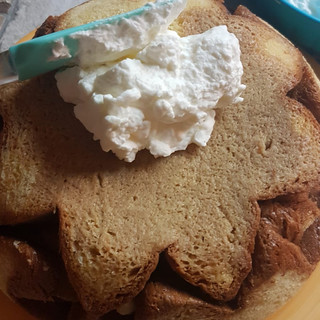 Prendere il pandoro, tagliarlo in 5 fette dello spessore di circa cm, scartare la base che solitamente è sempre troppo cotta. A questo punto, proseguire tagliando due delle fette centrali in quatto parti.